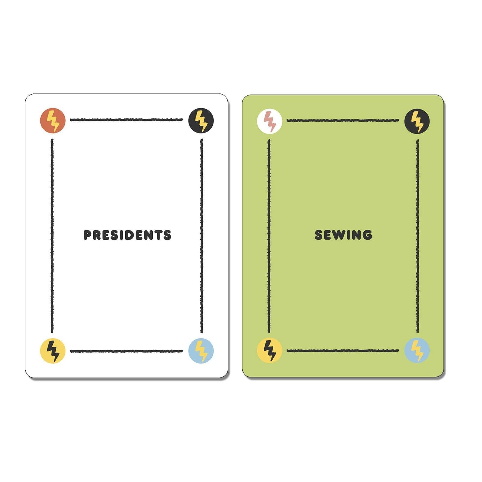 *Punderdome: A Card Game for Pun Lovers*From the daughter-father duo that created Brooklyn's beloved live pun competition comes Punderdome, the “Punderful card game \[that\] will replace Cards Against Humanity at your next party” (Mashable.com).One part game, one part conversation starter, you don't need to be a pun master to master Punderdome: the goal is to make bad jokes and have fun along the way.A player (the prompter for that round) draws two prompt cards from the deck, and then reads the prompts to the rest of the group, who have 90 seconds to create a single, groan-worthy pun that combines the two prompts.When time is up, pun makers share their puns with the prompter, who awards the prompt cards to the player whose pun he or she likes best. The winner then draws the next pair of prompt cards and the process repeats. Players win by obtaining 10 pairs of cards.*Every Game Set Comes With** 200 double-sided cards (100 White and 100 Green)* 2 Mystery Envelopes with fill-in prize slips* 2 80-page pads for drafting puns* 1 instruction card and 1 pun example card* A stu-PUN-dous time for 3 or more players