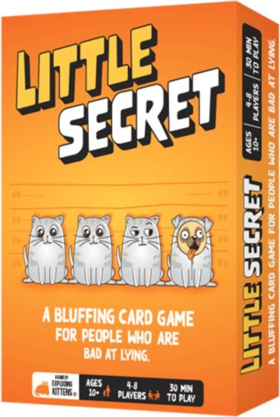 In this social deduction game, you're either a “good kitty,” a “confused kitty,” or a “spy pup.”The good kitties are trying to “catch” the confused kitties and the spy pup. At the start of the game, all but one player is given a “goal” word that only they know; the spy pup doesn't know what the goal word is and, in this game's twist on the genre, the confused kitties are given a false goal word that is related to the real goal word—and they do not know that they are false kitties. In a round, each player gives a one-word clue about the goal word, then the players vote on who they think doesn't know the goal word, and thus is not a good kitty. That player is eliminated, and rounds continue until only good kitties remain or only two players remain.A game typically consist of only a few minutes, and, once the game has been taught and the cards dealt, the game can played up to 21 times without the need to shuffle or re-deal any cards.*Contents:** 128 Cards Featuring* 378 Secret Passwords* 18 Unique Missions* 8 Secret Weapon Cards* Instruction Manual*Features:** 4–8 Players* 30mins* Ages 10+