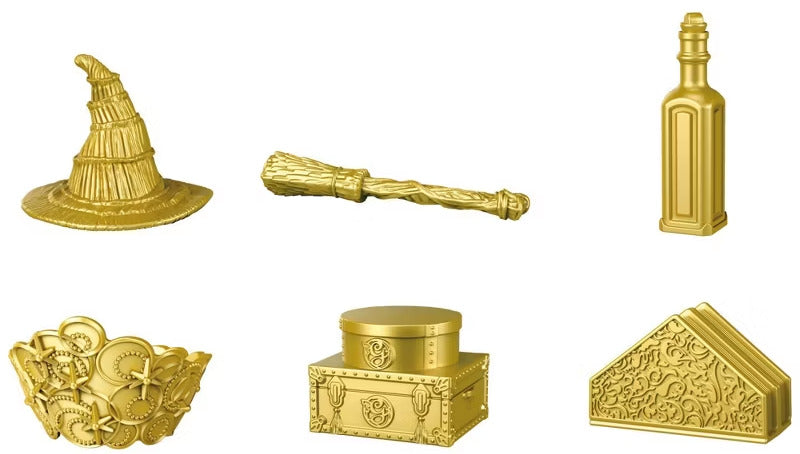Choose from 6 golden tokens: Elphaba’s hat, Elphaba’s Broom,Elphaba’s Bottle, Glinda’s Crown, Glinda’s Trunks, and The Grimmerie.Buy Munchkin Homes and Emerald Castles to gain the Wizard’s invitation—andearn more Ozian coins. The last player with coins when all other have gonebroke wins!