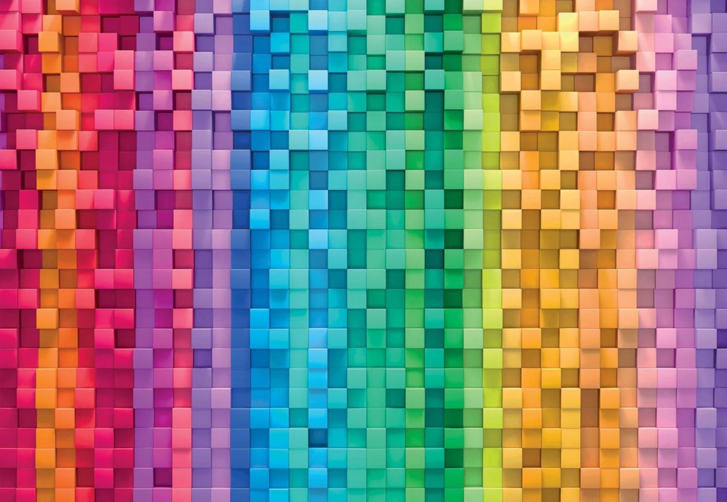 A flood of colours within this interesting puzzle contains a variety of colours but also a 3-dimensional look with some blocks higher or lower than others. So, not only are there colours to sort but also shadows changing the colours on the pieces. While this isn't an exact gradient, there are variations within the colour families that make this more reasonable to do. Some strips like the orange strip mixed with the pinks/reds and the violet between the red and pink. The process is an interesting study in colour so starting with the edges is a good way to begin. From there, you can build the image from the edges in. There are duplicate colours, so putting the piece in the right context next to the right colour will be the key. No doubt this is a challenging puzzle but so rich in the experience that it won't seem like a challenge.Finished puzzle size 59.2 × 84.3 cm