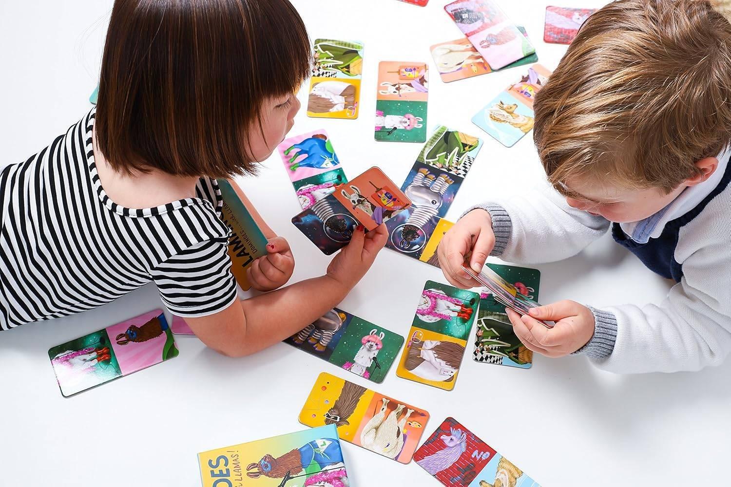 A hilarious herd of llamas star in this laugh-out-loud twist on the game of dominoes. From Llama-nardo da Vinci to Super Llama (it's a bird, it's a plane, it's . . . a llama?), kids, families, and llama enthusiasts will have a blast matching heads to tails to complete the chain and win! It's a goofy gift, a boredom-busting game, and a great way to develop matching and fine motor skills, all in one appealing and colorful package.This game will thrill young llama fans while developing matching and fine motor skills. This pun-filled, boredom bustling card game provides nonstop laughter and play for the entire family. This is the perfect game to give as a gift to any child ages 3 and up. The illustrator, Shyama Golden, is a beloved, New York-based artist that has been committed to creating a wide array of beautiful designs for over 10 years. These cards are beautiful and made with the highest of quality..*Features:** 2–4 Players* 10–15mins* Ages 3+