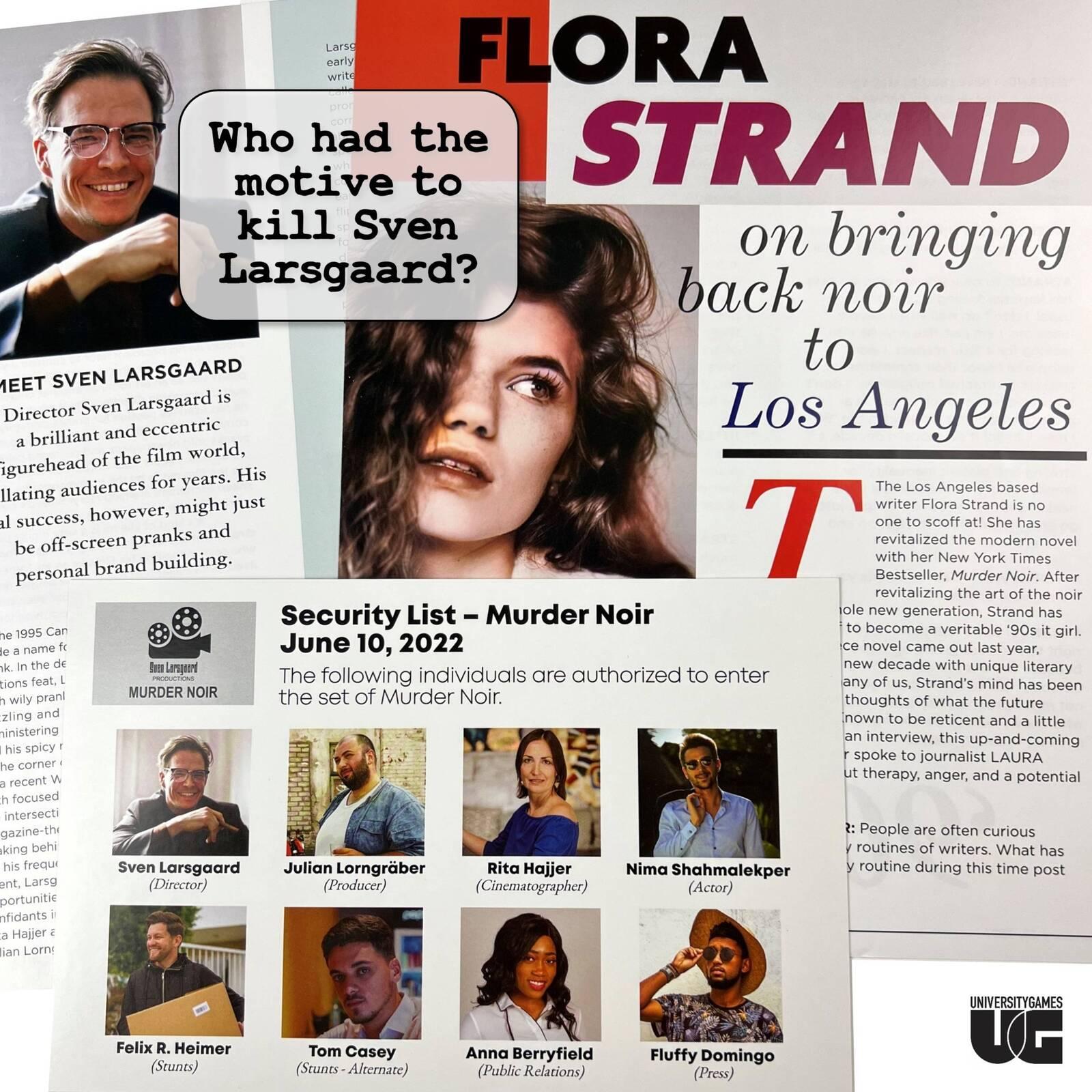 Murder Noir is a Murder Mystery Party Case File where players work to solve a murder using the case file and evidence provided. Director Sven Larsgaard is famous for his detailed pranks and hi-jinks on set. He dies on the set of his latest film.Was it a prank gone wrong… or murder? Murder Mystery Party Case Files are packed with physical and digital evidence, which puts the player in the detective’s shoes. Players think like a detective and work alone or with others to determine the motive, means, and opportunity of each suspect to solve the case.*Features:** 1+ Players* Ages 14+