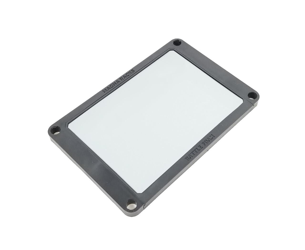 *BattleFoam: Magna Rack Slider – Small Kit (For P.A.C.K. Go)*The Magna Rack Sliders trays have been designed for gamers who like to store and transport their miniatures that have been magnetized. Magnetized models allow you to store your miniatures upright protecting them from rubbing on other materials. Sliders allow for easy access to your models. And because they are completely removable you can go from tray to table and back again with ease.All trays are made of heavy-duty injected molded plastic with an attached durable metal sheet. Ideal for magnetized models. Magna Racks can be assembled in an endless number of configurations using the patented Magna Rack Spacer Legs.*Specifics:** Some assembly is required.* Metal Sheet Dimensions – 9.125W x 6.5L" (232W x 165L mm)* Total Tray Dimensions – 11.5W x 7.75L x 0.625H" (292W x 196L x 16H mm)* Made to fit inside the P.A.C.K. Go* Bag, miniatures, & bases not included.*This kit includes:** 1 x Small Magna Rack Original Tray.* 4 x Small Magna Rack Slider Trays.* 4 × 6 inch (152 mm) Magna Rack Spacer Legs.* 4 × 3 inch (76 mm) Magna Rack Spacer Legs.* 4 × 2 inch (50 mm) Magna Rack Spacer Legs.* 4 × 2 inch (50 mm) short Magna Rack Spacer Legs.* 4 x Top Plugs* 4 x Bottom Plugs* 4 x Top Caps*Please note:*_One tray in this kit is static and does NOT slide out. All other trays will slide out for easy access. Surface scratches may be visible on the metal. Please understand when purchasing you may not have a blemish-free surface. This will not affect the functionality of the Magna Racks._