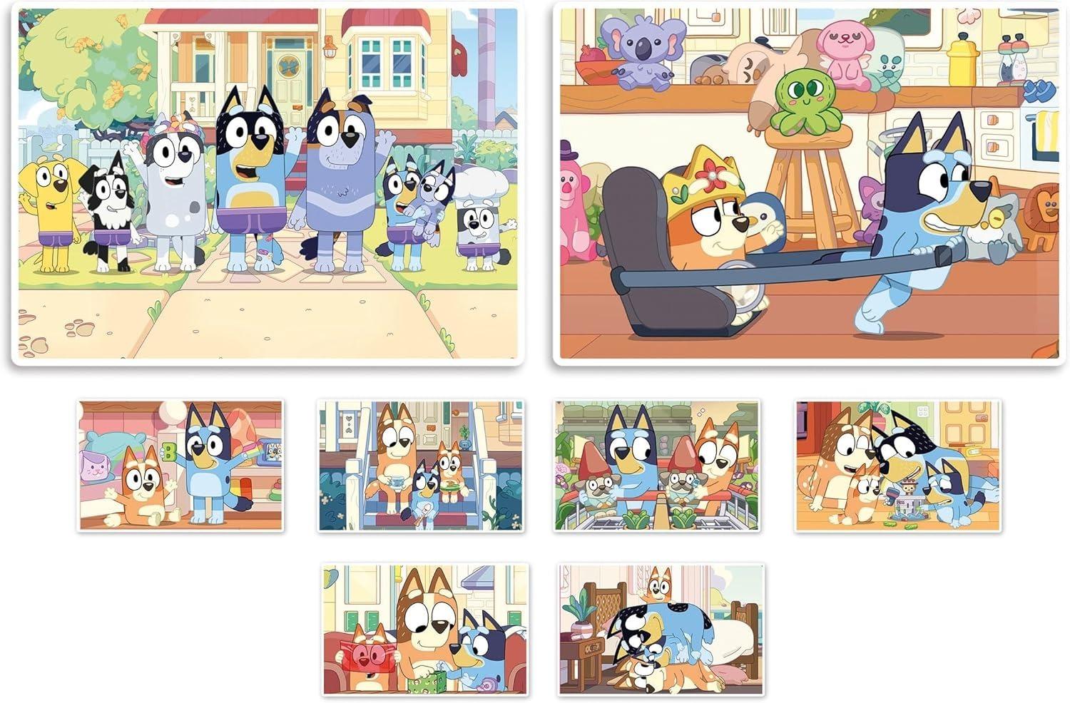 A comprehensive kit for lots of entertainment and learning in the company of Bluey characters!An educational and playful Compendium, with all the Paw Patrol squad! A truly complete game that works on pre-school themes and develops memory, logical skills and manual dexterity.*Contents:** 1× 30 Piece Jigsaw Puzzle* 1× 48 Piece Jigsaw puzzle* 48× Memo Cards* 6× Cubes*Specifications:** Ages: 3+* Puzzle measures: 24 × 17cm