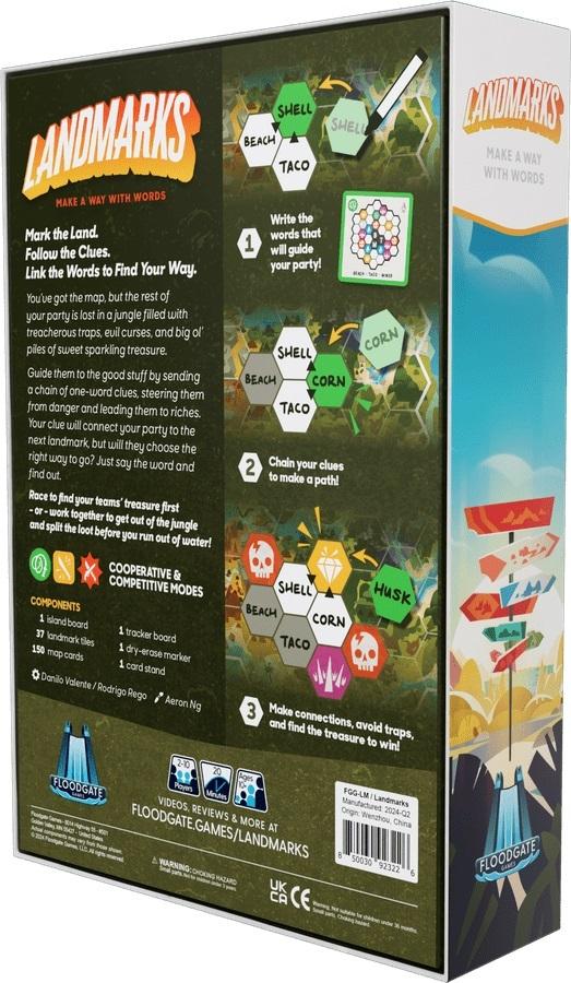 Landmarks is a word game of hidden paths and clever clues. Your party is lost deep in an island jungle, relying on you to guide them to safety and treasure!In this jungle, every word matters. Use strategic wordplay to send a chain of one-word clues. The connections between them will create a path leading to fortune and glory.Feels like a party game, wih laughter, interaction, and clever wordplayPlays like a thematic strategy game as you avoid island curses and jungle trapsPlay cooperatively with a group, or in a team-vs-team competition*Features:** 2–10 Players* 20mins* Ages 10+