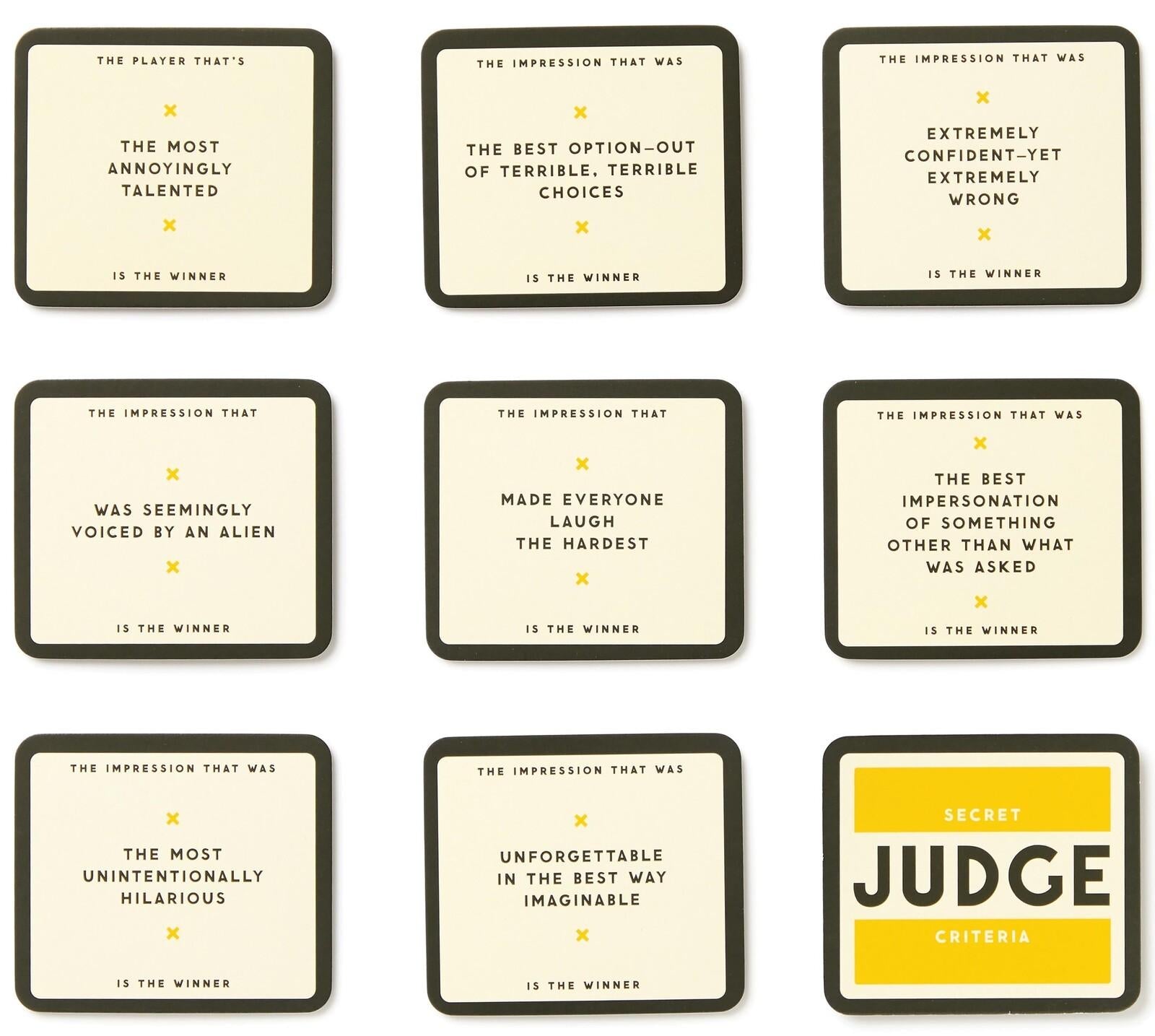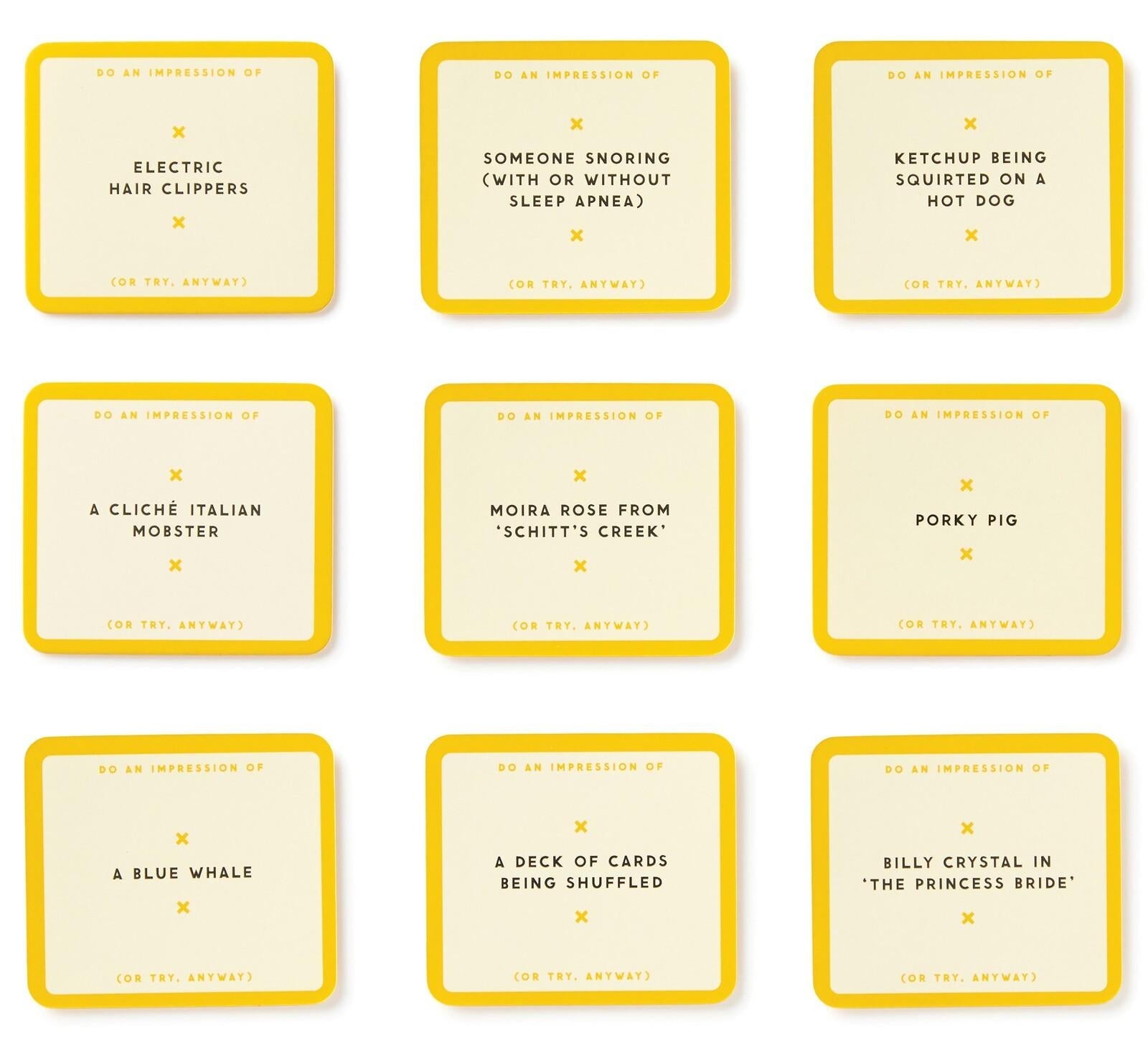 Finally, an impersonation game that’s even better if you’re terrible at doing impressions. Inside you’ll find 500+ prompts, each featuring a well-known character, animal or object to mimic—and players compete by trying their best to imitate them. Psst: we’ve even included a pad of paper so you can add your own. Each round is judged on a randomly selected (and secret) criteria—everything from ‘most accurate’ to ‘unintentionally hilarious.’ It doesn’t matter if you’re talented or not—anyone can win when it comes to imitating a dog that’s about to throw up. Includes 300 game cards–each with a different prompt to mimic like ‘Kermit the Frog’ or ‘A Gumball Machine’.*Features:** Includes pad of paper with 86 pages.* Box measures 5” x 2.8” tall x 3” deep (127mm x 71mm x 76mm).* Suitable for 2 to 8 players