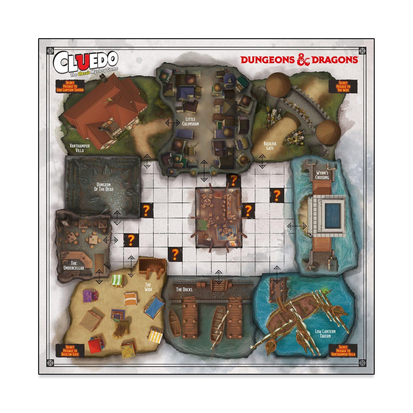 _In Dungeons & Dragons Cluedo, it’s up to you to determine WHO has been replaced by a devil in disguise, WHAT weapon was used in the execution, and WHERE in the Forgotten Realms the Infernal Puzzle Box could be hidden._Join Reya Mantlemorn, Falastar Fisk, Sylvira Savikas, Minsc & Boo, Lulu and Slobberchops as you journey across the board and eliminate evidence and suspects according to the clues your opponents reveal.Was Slobberchops murdered with the Horn of Blasting and is the puzzle box hidden in Twin Songs?Explore the Docks, the Wide, the Dungeon of the Dead and more in your quest across Baldur’s Gate for the truth.
