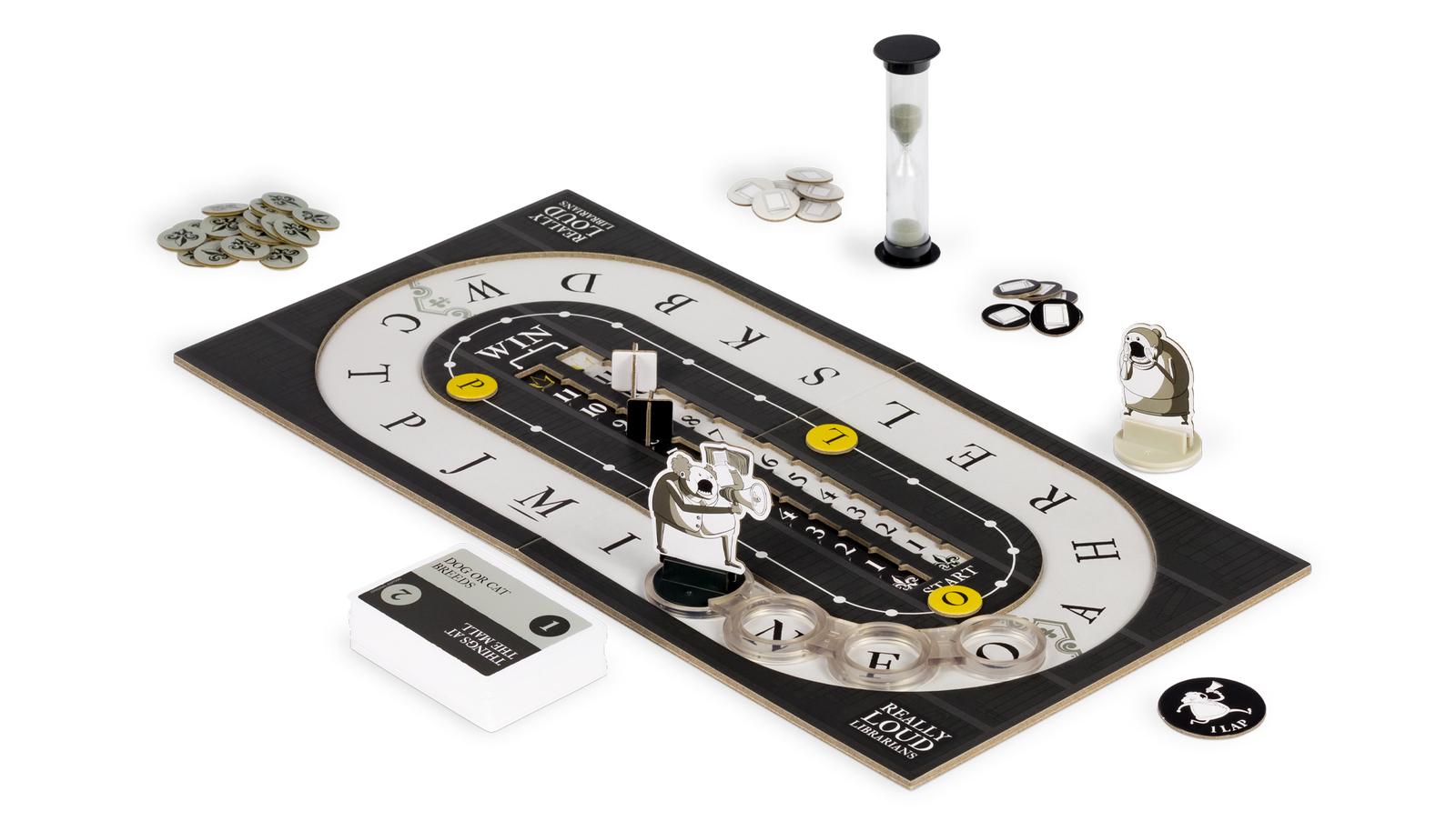Get ready to shush the competition in Really Loud Librarians! This high-energy team party game will have you and your friends racing around the board, shouting out words that fit a given category. But there's a catch – each word must begin with a specific letter on the track.With 60 different category cards and a variety of letter tiles to choose from, Really Loud Librarians offers endless hours of fun and entertainment. And with two librarians, 20 letter tiles, and 14 tokens, you'll have everything you need to get started right away.So gather your friends, set the timer, and get ready to make some noise! The team with the most laps at the end of the game wins. Can you out-shout the competition and become the ultimate librarian champion?*Contents:** Gameboard* 60 Category Cards* 2 Librarian Player Pieces* 20 Letter Tiles* 14 Tokens* 2 Score Markers* Chain* Timer* Instruction Manual