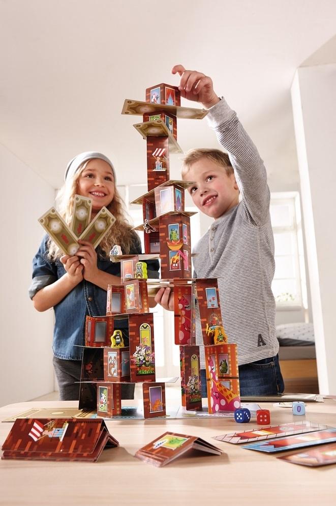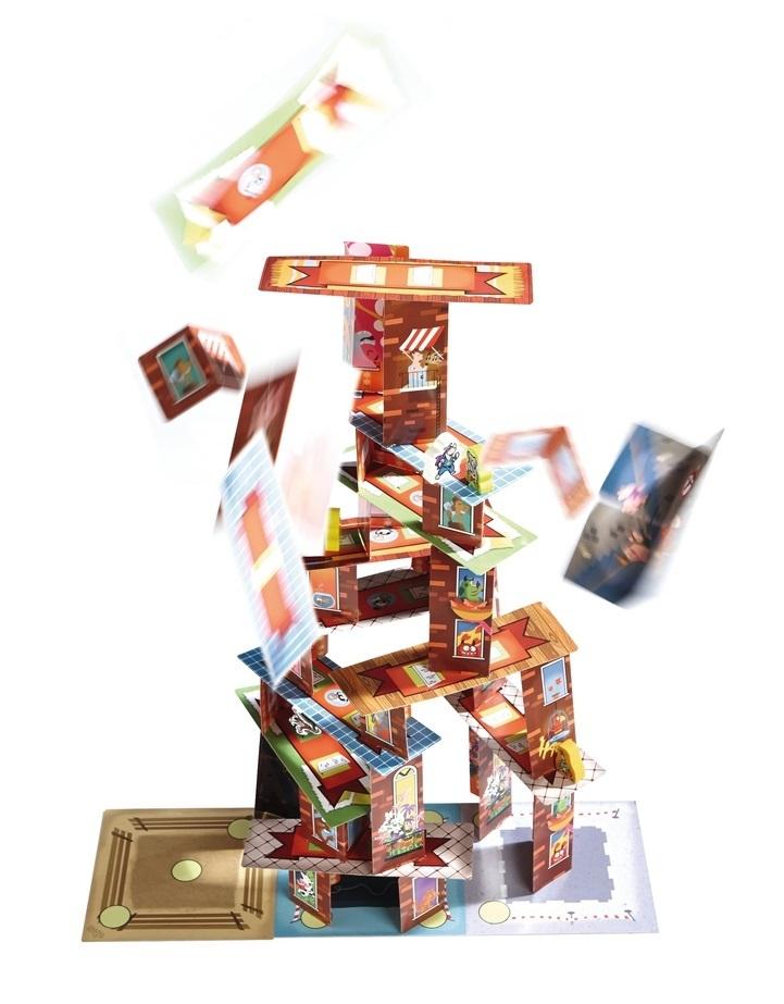 *Rhino Hero and his superhero friends have all sorts of adventures on the card skyscraper*But be careful: it gets higher and more wobbly as more cards are used to build walls and floors. Players who have luck with the dice move their own superhero high up, and defend their spot against other players in dice battles … if only there weren't the spider monkeys who make the skyscraper sway.*Features:** Build a spectacular 3D cardboard skyscraper* Wobbly excitement for cool action heroes* New game from this bestselling series Rhino Hero*Game Contents:** 1 Game board (3 square pieces, printed on both sides)* 30 Floors, 24 short walls, 24 tall walls, 3 dice (red/blue/light blue)* 4 Spider monkeys, 4 superheroes (Rhino Hero, Giraffe Boy, Big E. and Batguin)* 1 Superhero medal* 1 Set of instructions*The Dice Tower Seal of Excellence is a trademark of The Dice Tower, LLC and is used with permission.*