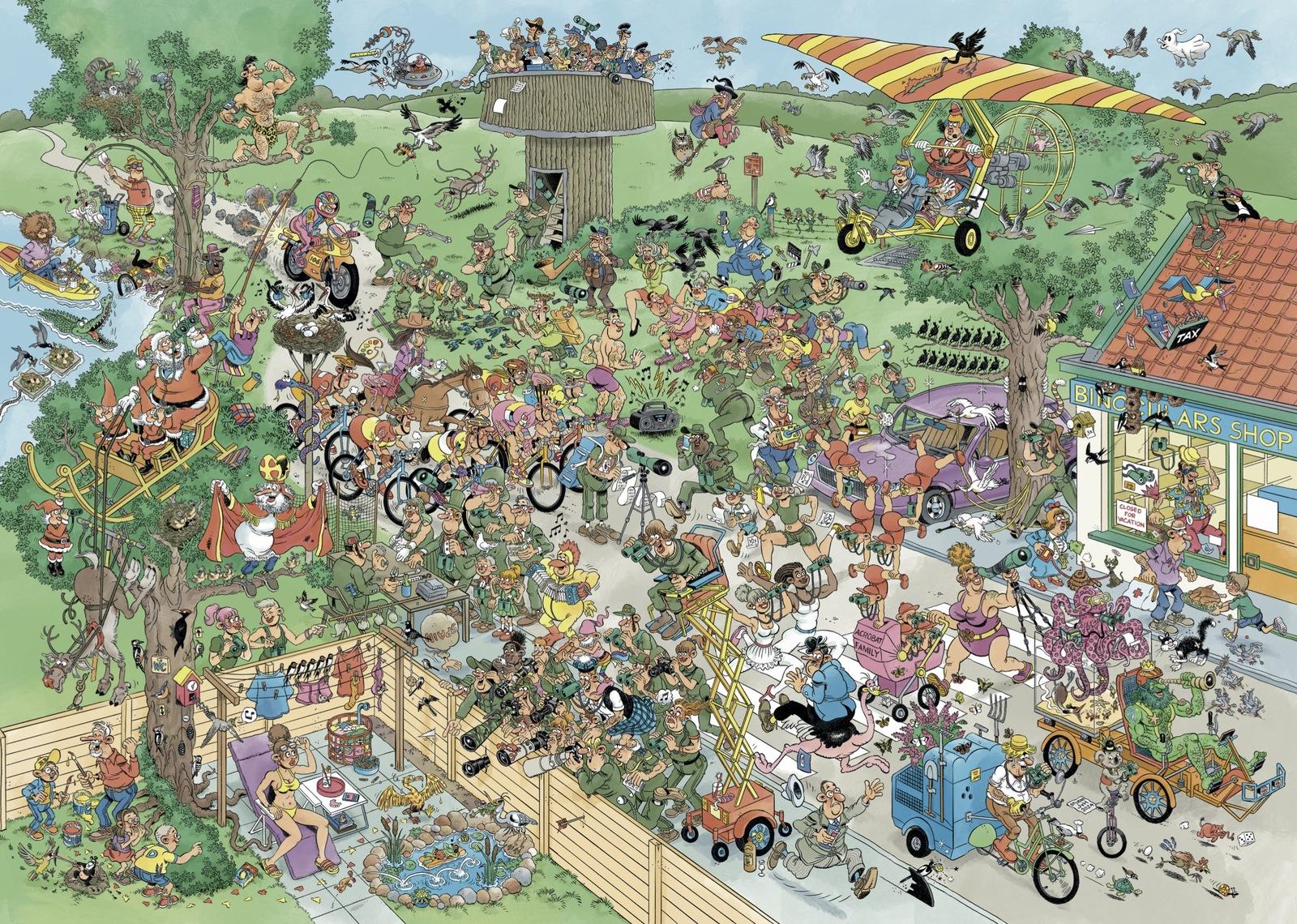 Jan Holdson: Jan Van Haasteren – born in Holland in 1936, becoming a Freelance illustrator creating posters for the likes of Heineken, now creating puzzles illustrations for customers all over the world.Everybody is out wanting to get the best shot of the Bird Migration from every viewing point imaginable, but which birda are they watching and did they get their binoculars?*Features:** Approximate puzzle size 688×493mm.* Manufactured in New Zealand by Holdson using vegetable based inks and recyclable materials.*Suitable for ages 8 years and up.*