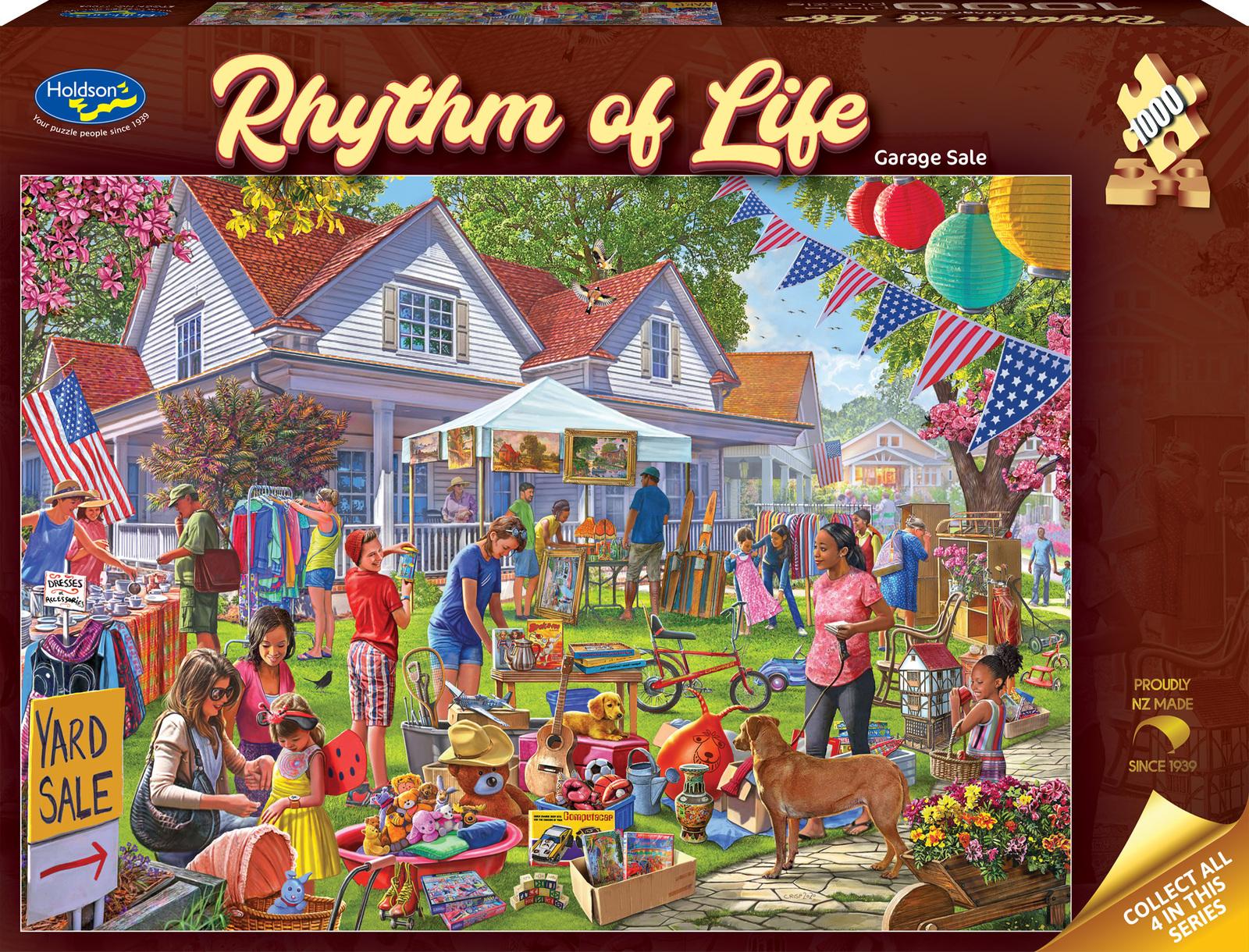 This series embraces the casual colorful cadence of living in the moment, it’s a celebration of familiar scenes, this one celebrates the good old garage or yard sale, a great way to bring the community together whilst selling your treasurers to new owners.*Features:** Approximate puzzle size 688×493mm.* Manufactured in New Zealand by Holdson using vegetable based inks and recyclable materials.*Suitable for ages 8 years and up.*