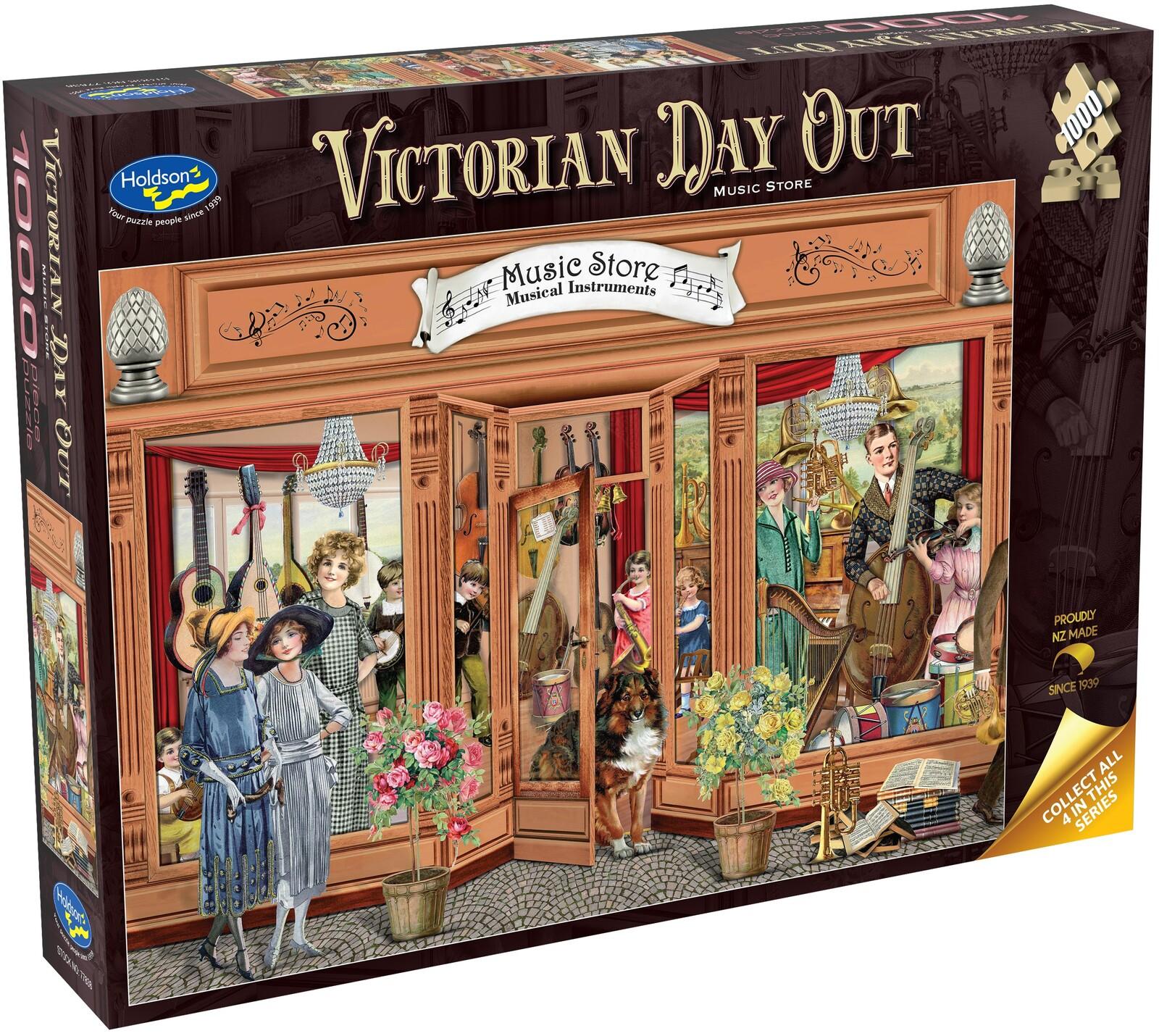 Enjoy a charming Victorian Day Out with this delightful 1000pc puzzle assortment, featuring nostalgic scenes. Each beautifully illustrated puzzle captures the elegance and bustling charm of a bygone era. There are four titles to choose from: Bikes, Bicylettes, Bikes, Book Shop, Furniture Shop and Music Shop.*Features:** Manufactured in New Zealand by Holdson using vegetable-based inks and recyclable materials.* Approximate puzzle dimensions: 688mm x 493mm.* Puzzle box size: 270mm x 370mm.* Suitable for ages 8+ years.