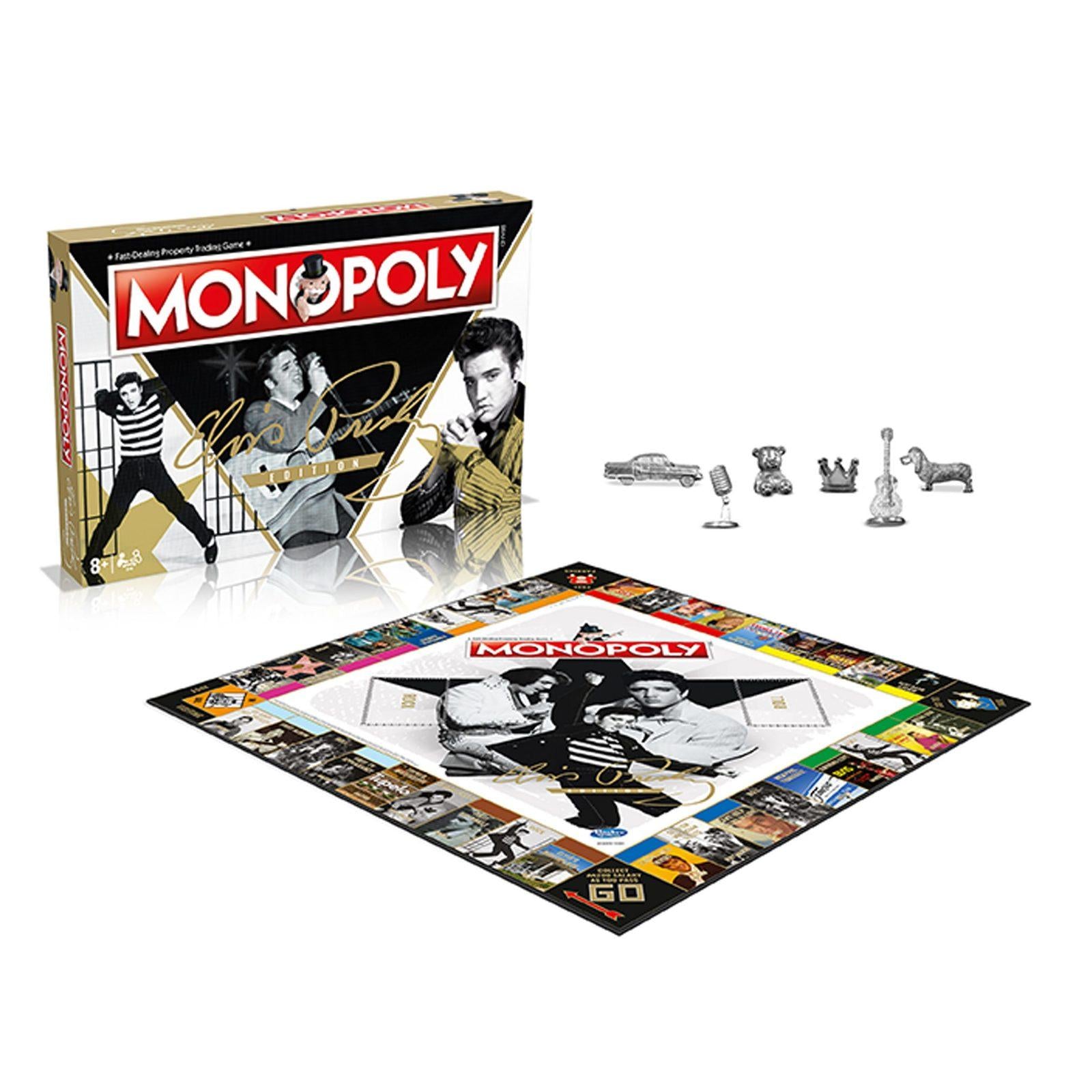 From his humble beginnings in Tupelo, Mississippi, to his hard-earned mansion Graceland in Memphis, Tennessee, relive the life and career of the King of Rock in this stunning new Elvis Monopoly, featuring all of the singles, concerts and locations that defined Elvis Presley’s legacy.Buy up Elvis singles and iconic locations, build stands and stadiums and gather Rock and Roll cards for unexpected prizes and penalties.Whether you remember the King’s celebrated career yourself, or are just discovering his music for the first time, you only need to roll the dice to immerse yourself a piece of rock and roll history.