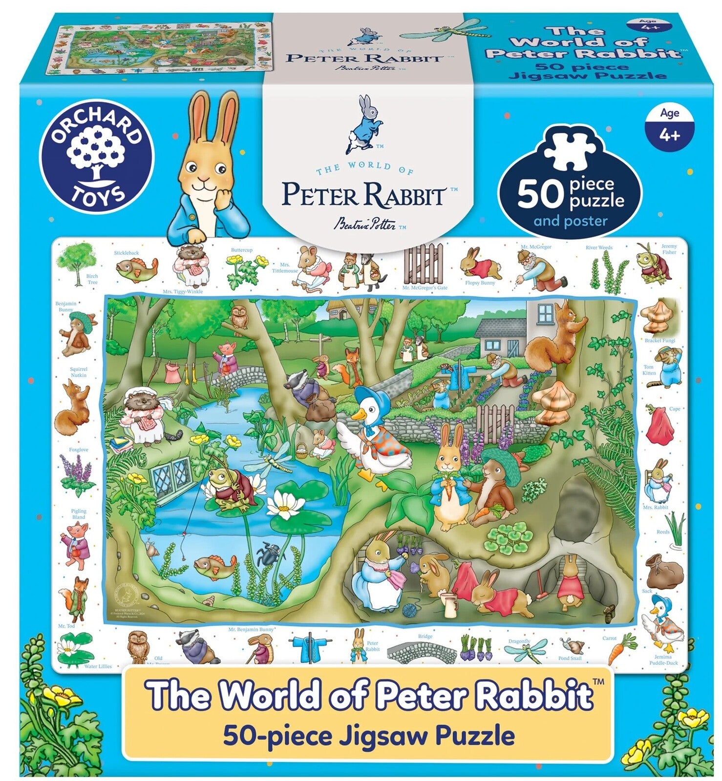 - Contains: 50-piece jigsaw puzzle featuring Peter Rabbit and friends in adetailed outdoor scene