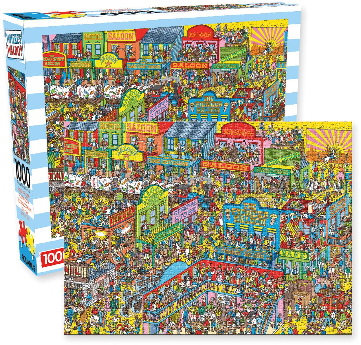*Embark on a wild and whimsical adventure with the Aquarius Where's Waldo? Wild Wild West 1000-piece jigsaw puzzle.*Get ready to search for the elusive Waldo and his friends as you piece together this vibrant and visually captivating puzzle.With 1000 pieces, this puzzle offers an exciting challenge that will captivate both fans of Where's Waldo? and puzzle enthusiasts. Dive into the bustling Wild Wild West scene and enjoy the thrill of finding Waldo, along with other hidden objects and characters, as you assemble this intricately designed puzzle.This puzzle celebrates the classic Where's Waldo? series set in the exciting Wild Wild West. Get lost in the detailed and lively illustration, filled with cowboys, bandits, and quirky characters. Sharpen your observation skills and embark on a search for Waldo and his companions in this playful and entertaining puzzle.Aquarius puzzles are renowned for their quality craftsmanship. The puzzle pieces are made from durable materials, ensuring a precise fit and long-lasting enjoyment. The vibrant colors and intricate details faithfully capture the charm and humor of the Where's Waldo? series, providing an immersive puzzle experience.Once completed, the puzzle forms a visually dynamic image that showcases the bustling Wild Wild West scene, complete with hidden objects and delightful surprises. Marvel at the intricate details of the illustrations and enjoy the sense of accomplishment as you uncover the elusive Waldo and his friends amidst the chaos. It's a puzzle that will entertain and challenge puzzlers of all ages.Embark on a delightful search and assemble the *_Aquarius Where's Waldo? Wild Wild West 1000-piece jigsaw puzzle_*.Let your imagination run wild as you piece together this entertaining puzzle, capturing the whimsy and adventure of Where's Waldo? in the Wild Wild West.