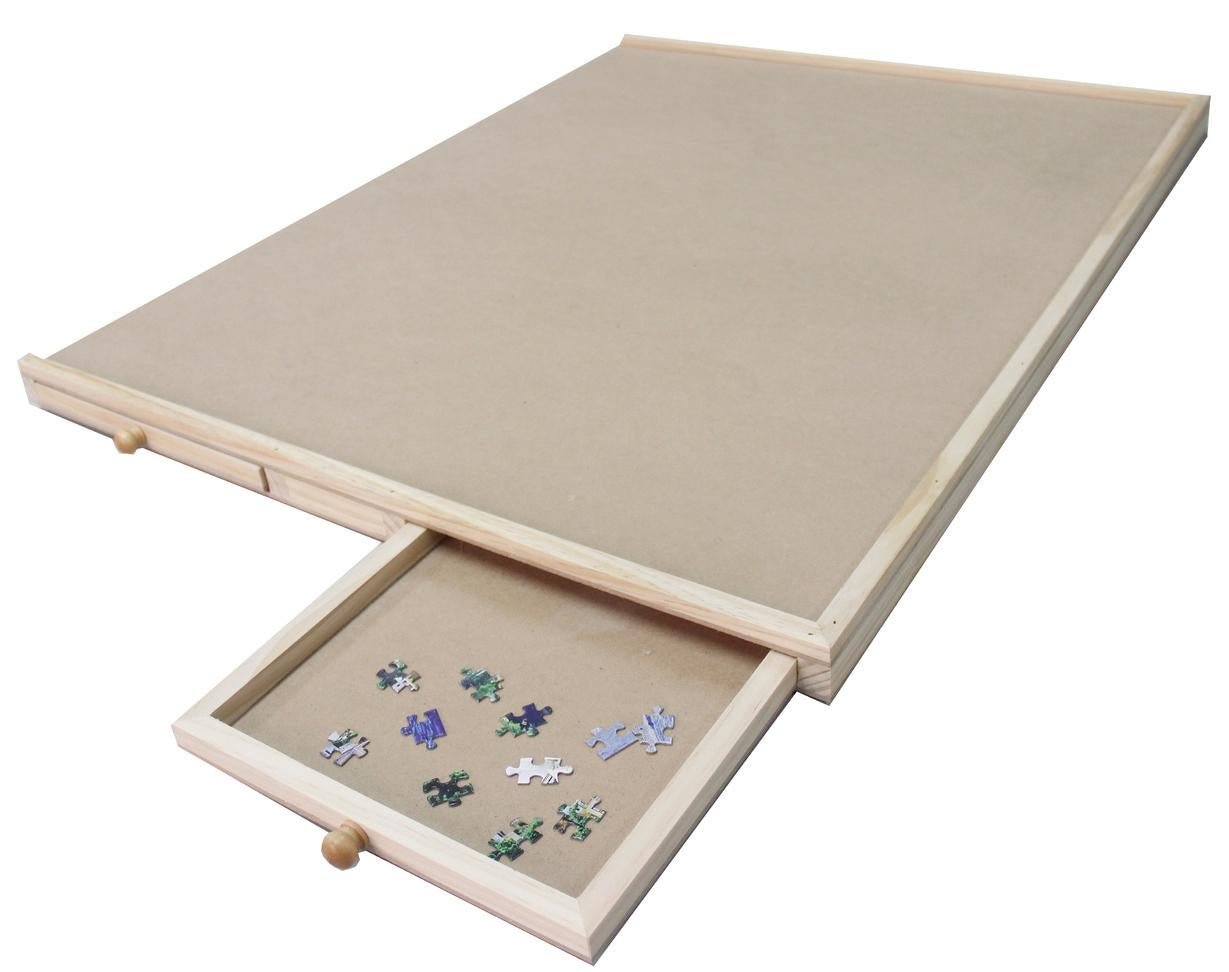 *34" Large Wooden Jigsaw Puzzle Table with 4 Drawer – 1500pc*Enhance your puzzle-solving experience with the *34" Large Wooden Jigsaw Puzzle Table*, designed to accommodate puzzles up to 1500 pieces. This elegantly crafted table is both functional and stylish, making it a perfect addition to any home for puzzle enthusiasts.*Features** *Ample Space*: Provides a large working area with dimensions of 86.4 × 65.8 cm, perfect for puzzles up to 1500 pieces.* *High-Quality Material*: Made from durable MDF, ensuring longevity and a smooth surface for puzzle assembly.* *Natural Finish*: The natural wood color complements any décor, adding a touch of elegance to your living space.* *Convenient Storage*: Equipped with four spacious drawers to organize and store your puzzle pieces, keeping them safe and accessible.* *Portable Design*: Lightweight and easy to move, allowing you to work on your puzzles anywhere in your home.Upgrade your puzzle-solving setup with the *34" Large Wooden Jigsaw Puzzle Table with 4 Drawers*. Combining functionality, durability, and style, this table is the perfect solution for organizing and enjoying your puzzles.*Specifications** *Dimensions*: 86.4 × 65.8 × 4.2 cm* *Materials*: MDF (Medium-Density Fiberboard)* *Color*: Natural* *Warranty*: 1 Year