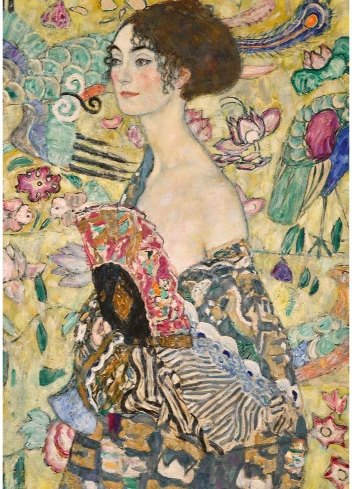 Puzzle from Ravensburger with the motif of Gustav Klimt: Lady with a fan canbe great entertainment for long evenings, but at the same time it can also be aunique decoration for your room.